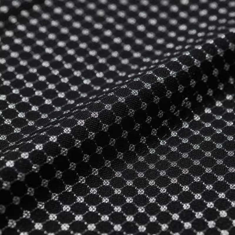Dot Mesh Birdseye Cloth adoptă o structură unică a găurilor din plasă cu puncte. În comparație cu pânza tradițională pentru ochi de pasăre, găurile de pânză cu plasă cu puncte sunt mai fine și mai regulate. Acest design inovator îmbunătățește foarte mult respirabilitatea și funcția de transpirație a cârpei, făcând circulația aerului mai lină, iar transpirația se evaporă rapid, menținând purtătorul uscat și confortabil. Indiferent dacă este vorba de exerciții fizice intense sau pe vreme caldă, pânza cu plasă cu puncte poate preveni eficient reținerea transpirației și oferă o experiență confortabilă ideală. Datorită respirabilității și absorbției umidității și performanței de transpirație, pânza cu plasă cu puncte este foarte potrivită pentru producția de îmbrăcăminte sport, îmbrăcăminte de vară și îmbrăcăminte zilnică casual. Textura ușoară și atingerea confortabilă a pânzei cu ochi de pasăre din plasă cu puncte fac din aceasta o alegere ideală pentru purtarea pe termen lung, potrivită pentru pasionații de sport și persoanele care iubesc activitățile în aer liber. Fie că este vorba de echipamente sportive, cum ar fi haine de alergare, pantaloni de yoga, haine de fitness sau îmbrăcăminte ușoară, cum ar fi tricouri și pantaloni scurți de vară, pânza de tip ochi de pasăre cu plasă cu puncte poate oferi confort maxim și poate evita disconfortul cauzat de exercițiile pe termen lung sau de purtarea la temperaturi ridicate.