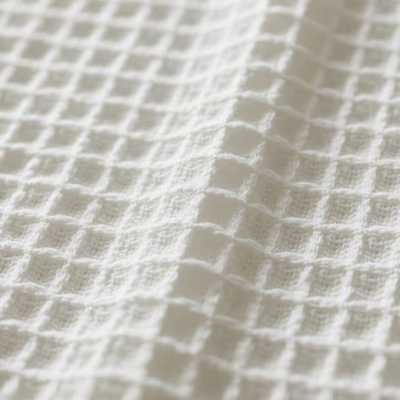 Waffle Knit Comfort Fabrics este o țesătură țesătă cu o textură unică, concav-convexă, asemănătoare grilei. Suprafața sa are forma unei vafe, care are o respirabilitate excelentă și o absorbție excelentă a transpirației. Această structură permite țesăturii să absoarbă eficient umezeala și să elimine rapid transpirația, menținând pielea uscată. Este potrivit pentru purtare în timpul exercițiilor de mare intensitate și poate absorbi și evapora rapid transpirația pentru a asigura confort în timpul exercițiilor. Ușurința și moliciunea țesăturii Waffle Knit îl fac foarte confortabil de purtat vara. Este utilizat pe scară largă în producția de cămăși de vară și alte îmbrăcăminte pentru a menține corpul răcoros pe vreme caldă. Datorită respirabilității bune și funcției de absorbție a transpirației, această țesătură este foarte potrivită pentru a face prosoape de sport pentru a ajuta sportivii să șteargă rapid transpirația și să rămână uscat în timpul exercițiilor fizice.